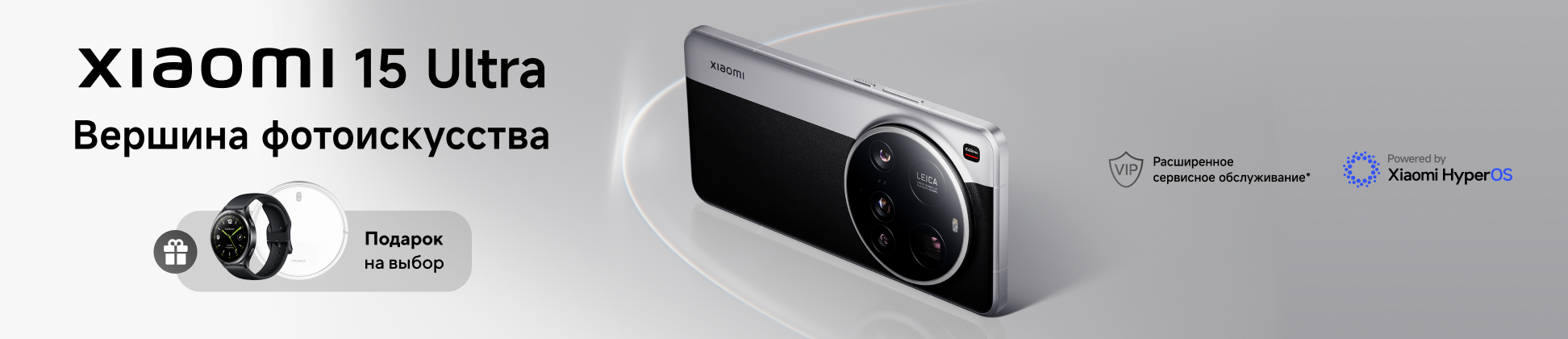При покупке Xiaomi 15 Ultra с 1 по 31 мая — Xiaomi Watch 2 или робот-пылесос Xiaomi Robot Vacuum E12 в подарок на выбор!